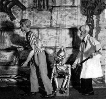 before long was performing marionette shows for his family and friends. Looking