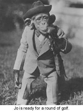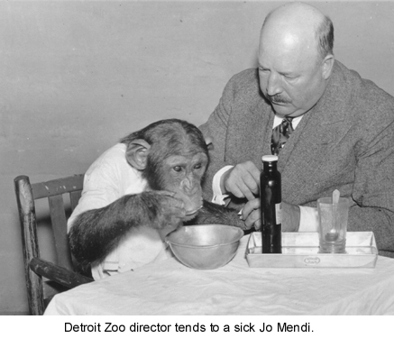 In 1932 Jo appeared onstage at the Michigan Theater in downtown Detroit for a vaudeville revue. Making his first headliner appearance was a young comedian named Bob Hope. Hope recalled the gig in a 1944 Detroit News interview. �There I was in the dough at last, and I felt so good I invited my folks over from Cleveland to witness my triumph.� When Hope arrived at the theater, he stopped to look at his name on the marquee. �But it wasn�t my name up there. It was that of Jo Mendi, a locally famous chimpanzee. I dashed to the manager with a protest. His reply was �Jo Mendi has a big name in this city�you haven�t.�