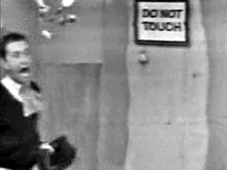 The studio that day was filled with curious onlookers who were in on the joke. Soupy knew that something was up, but he wasn�t quite sure what. The show started precisely at noon, and ran smoothly. At about 12:27 Soupy, as rehearsed, heard a woman�s scream. He ran to the door, opened it, and instead of a pair of women�s shoes saw a nude woman wearing nothing but a smile. Soupy stole a quick glance at the master monitor, hoping that the curvaceous cutie�s image wasn�t being broadcast live over the airwaves. Sure enough, to his horror the monitor showed exactly what Soupy had feared- a smiling nude woman. The engineers were clever enough to patch a different camera angle into the monitor, making Soupy think that thousands of Detroit kiddies were at home eating their lunches in front of the TV while getting a lesson in female anatomy. In reality, what the kids saw was a speechless Soupy standing next to an open door, nothing more. Soupy saw what he thought was his career passing before his eyes.